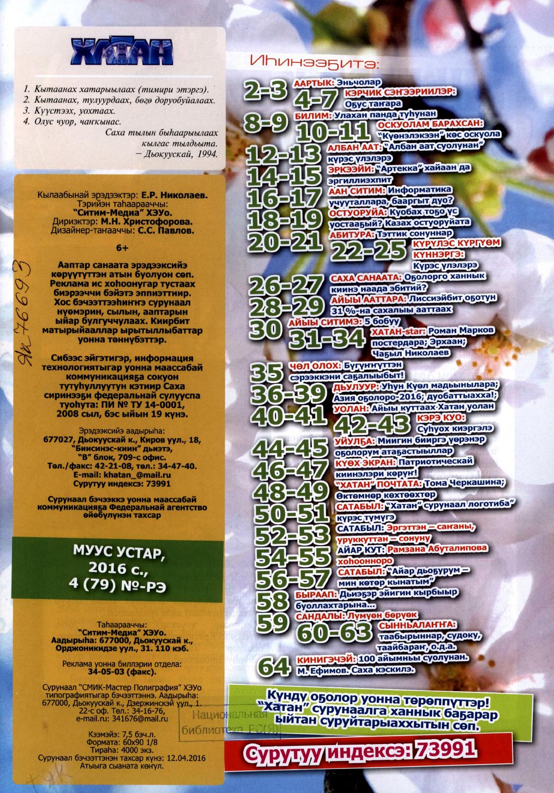 - 16. Хатан: ыччат сайдам сурунаала, 2016, №2 (77) (олунньу)